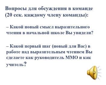 Результаты опроса показали, что проблемы с пониманием глубины и методики работы над выразительным чтением есть у многих педагогов. Далее коллегиально был сделан вывод о том, что сложности с выразительным чтением будут и у обучающихся. Ведущий предложил тему мастер-класса: «Выразительное чтение: эстетика с глубоким смыслом».