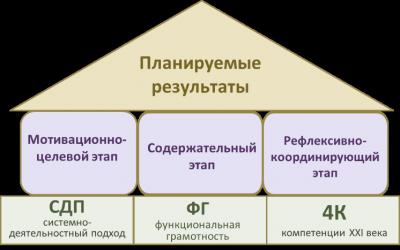 Структура современного урока должна соответствовать реализации системно-деятельностного подхода, а значит включать в себя три основных этапа: мотивационно-целевой, содержательный и рефлексивно-координирующий.
