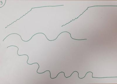 Слушание музыки и музыкальные нейропрописи оставляем на конец музыкального занятия. Возраст детей – от 5 лет. Они «прописывают» фигуры прописи указательным пальцем по заранее приготовленной карточке произведения, запланированного для прослушивания. Перед прохождением каждого произведения, проводим подготовительную работу с применением ИКТ-технологий.