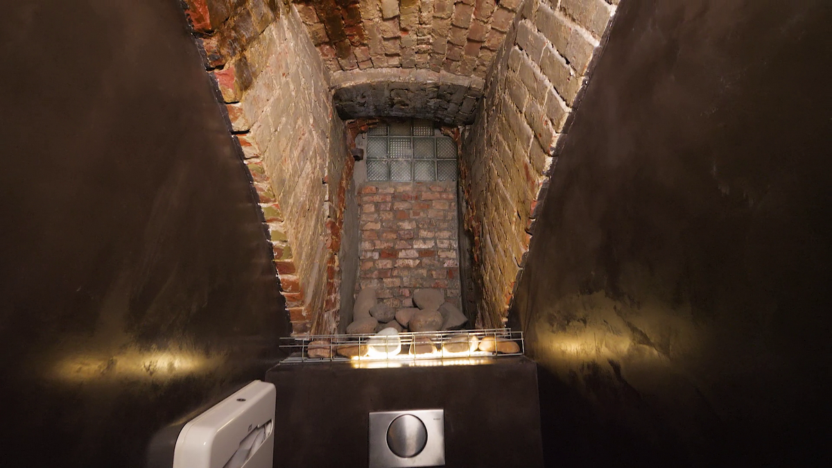 Уникальный для Новосибирска интерьер, в подлинность которого с трудом верят заезжие туристы. Но это так. Очищенные от слоёв штукатурки толстые кирпичные стены, мощные сводчатые потолки, которых множество в этом здании.