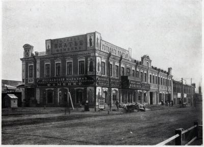 До революции в стенах этого дома в разное время находились: гостиница «Ново-Николаевское подворье», номера «Европа», магазин и торговый дом собственного предприятия купца «Суриков и сыновья», после «Московский магазин готового платья Фоменко». Александр Николаевич Фоменко был омским купцом 2-й гильдии, имел пивзавод, собственную суконную фабрику в Омске, магазины в Томске и Ново-Николаевске, где торговал «московским платьем».