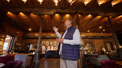 Интерьер «Чашки кофе» в доме Сурикова. Кадр д/фильма «Дом на Красном». 2023 г.