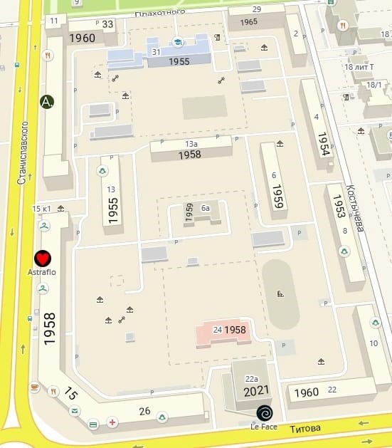 Практически все угловые дома квартала (Станиславского11/Плахотного33, Станиславского15/Титова26, Титова 22/Костычева10) будут построены в 1958-1960 годах. Исключение составит лишь дом Костычева2/Плахотного29. Именно он завершит строительство 33 квартала и будет построен уже в «хрущевском» стиле, а не в стиле сталинского ампира в 1965 году. Интересно, что в 2ГИСе он прорисован как два отдельных дома, но это не так. Подобно всем угловым домам квартала 33 это монолитное здание, разделенное аркой.