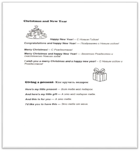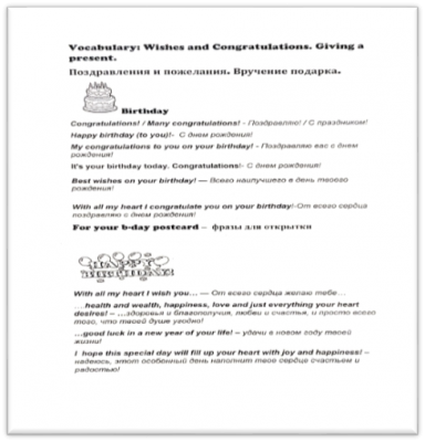 Для достижения данных целей мои ученики изучают образцы диалогов по теме, разбирают социокультурные особенности общения в данной речевой ситуации. Для этого я использую аудиоматериалы к УМК Spotlight и УМК Smart соответствующего уровня, а также видеоматериалы из интернета. Далее мы отрабатываем вокабуляр и речевые образцы по изучаемой теме. Для этого я составляю Vocabulary Guide по каждой теме для своих учеников.