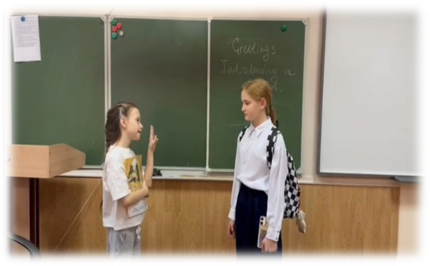 Далее следуют тренировочные упражнения различного типа по анализу и построению диалога. Разыгрывая диалоги и сценки, мы с ребятами используем всевозможный инвентарь и атрибуты иноязычной культуры, приближая наш диалог к реальной ситуации общения. Итогом нашей работы становятся видеоролики, которые ученики самостоятельно создают в мобильном приложении CapCut, осуществляем рефлексию проделанной работы.