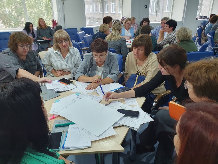 Во-вторых, важно продумать приемы, которые позволят в ходе второго содержательно-деятельностного этапа включить в активную и продуктивную деятельность всех участников. Предлагая коллегам выработать совместное решение, составить кластер или чек-лист, заполнить систематизирующую таблицу или нарисовать скетч, важно определить необходимое для этого время, продумать алгоритм работы и подготовить конкретизирующие каждый шаг инструкции. При этом важно понимать, что в больших группах решение сложных интеллектуальных задач затруднено даже при высокой мотивации участников. Если предварительно не проводилась работа по командообразованию, целесообразно начинать с совместной деятельности в парах, постепенно объединяя учителей для обмена мнениями, демонстрации созданных продуктов. Однако на этом этапе велик риск того, что вместо взаимного обогащения может быть получен результат, несопоставимый по качеству с ожидаемым. В связи с этим, на данном этапе важно предусмотреть участие фасилитаторов и экспертов.