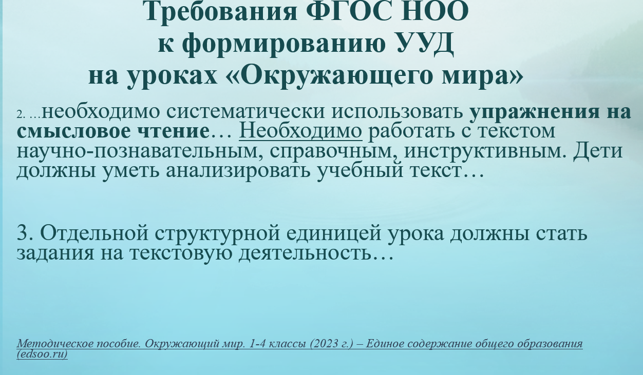 2. Окружающий мир. Реализация требований ФГОС начального общего образования: методическое пособие для учителя // [Н. Ф. Виноградова, И. С. Артюхова]; под ред. Н. Ф. Виноградовой. – М.: ФГБНУ «Институт стратегии развития образования», 2023. – 76 с.