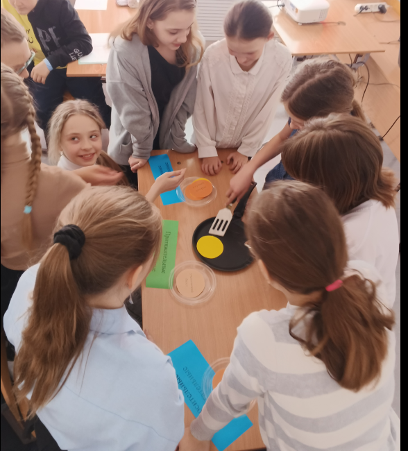1. Подготовка. «Выпекание блинчиков»: обучающиеся в группах готовят блинчики. Один ученик выполняет роль шеф-повара, задача, которого заключается в «наливе теста на сковороду».