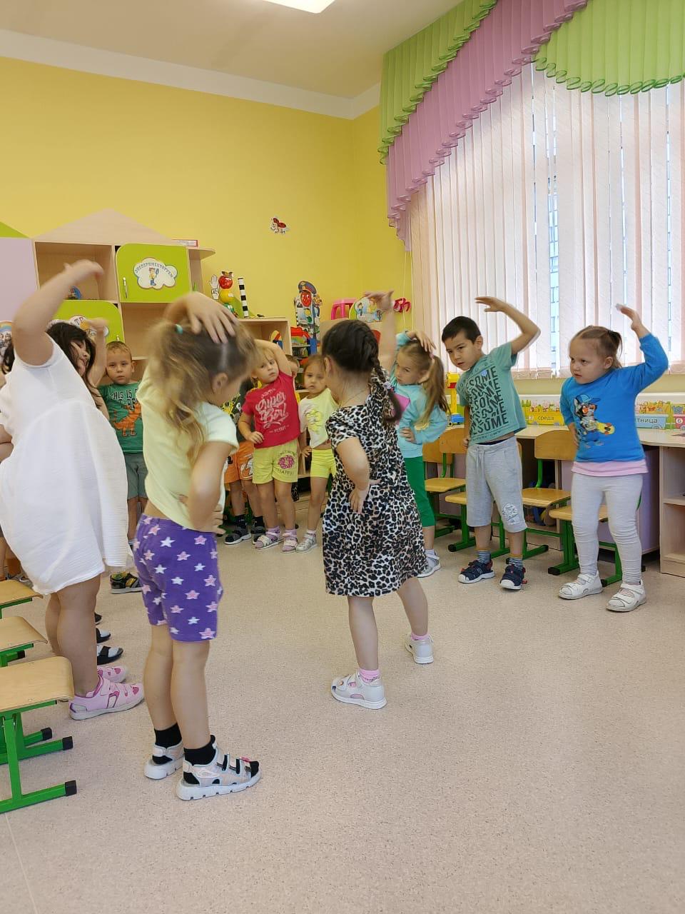 Все действия выполняются в любой последовательности, а заканчиваются действием «Потанцевать» – выполняется утренняя гимнастика под веселую музыку. Один или два человека выходят в центр круга и показывают движения, а остальные повторяют. Хорошее настроение обеспечено!