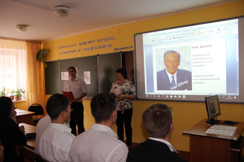 При подготовке мероприятия учитывались особенности и интересы учащихся. Материал был подобран таким образом, чтобы дети легко восприняли и поняли данный материал. На мероприятии дети многое узнали о великом человеке в лице Уолта Диснея, о появлении его первого героя, его достижениях и трудном пути к ним. Дети активно принимали участие в викторине, что говорит о том, что они хорошо восприняли материал.