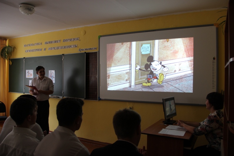 Учитель: Добрый день, уважаемые гости! Сегодняшняя встреча посвящена выдающемуся художнику-мультипликатору Уолту Диснею. Вас ждёт просмотр документальных и художественных видеоматериалов и мультфильмов. А также викторина, посвященная творческому пути и личности этого великого художника.