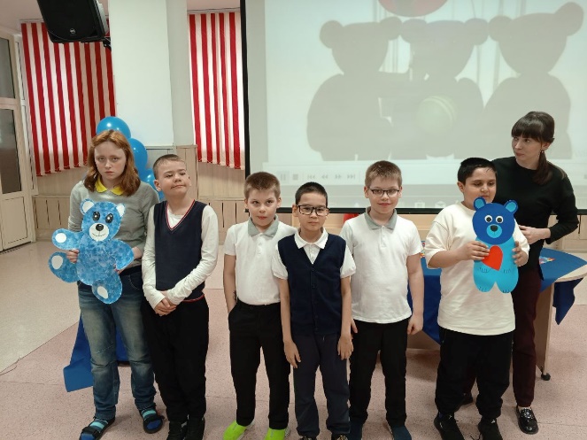 – в каждом классе обучающиеся с классным руководителем выполняли творческую работу «Синий мишка» и готовили представление своей работы;