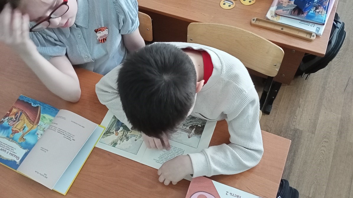 Библиотекарь: Отлично! Еще одно понятие, которое нам сегодня пригодится, –– это цитата. Цитата – это дословное высказывание или кусочек текста из книги. Вы сегодня в игре будете отвечать цитатами из сказок Александра Сергеевича, именно поэтому у вас на столе находятся книги. У каждой игры есть правила, наше правило: не выкрикивать ответы (чтобы не подсказать соперникам), а поднимать руку и отвечать, когда я вас спрошу. Мы начинаем нашу игру, и первый тур называется «Найди иллюстрацию к словам». Я зачитываю цитату, а вы к этому отрывку находите в книге подходящую иллюстрацию.