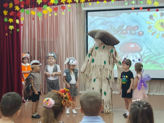 В рамках вариативной программы «Театральный калейдоскоп» осенний праздник был задуман с включением театральной постановки по мотивам сказки Владимира Сутеева «Под грибом». Используя инновационные технологии по взаимодействию между детьми, родителями и педагогами, мы получили максимально доброжелательное и эффективное сотрудничество с родителями, а также между детьми и родителями.
