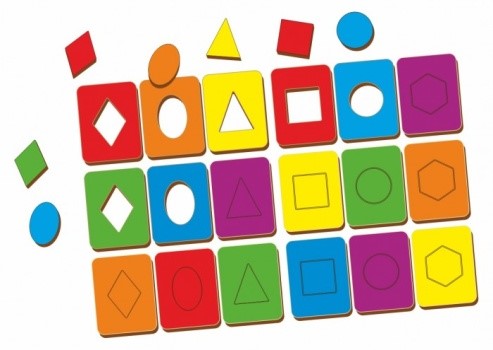 5. Память. Постройте перед ребенком ряд из досочек для разных фигур. Попросите его запомнить этот ряд, закройте ширмой и попросите ребенка повторить этот ряд из геометрических фигур по памяти.