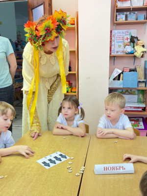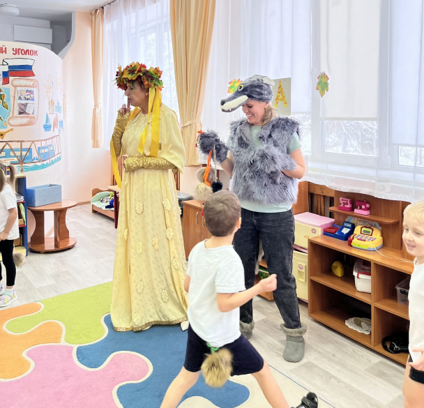 Сюрпризный момент: в роли «волка, ежа» Наталья Петровна, Надежда Николаевна в роли осени.