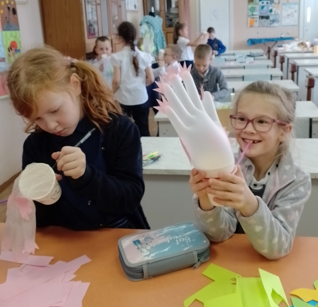 Первоклассник в начале учебного года может сказать – не могу, не умею. В конце первого года обучения он преодолел свои первые трудности и может успешно защитить свой первый творческий проект, поучаствовать в выставке. Работы обучающихся нашей школы, творческого объединения «Лабиринт мастерства» постоянно участвуют в выставках и конкурсах различного уровня. Часто из индивидуальных работ мы формируем коллективные композиции.