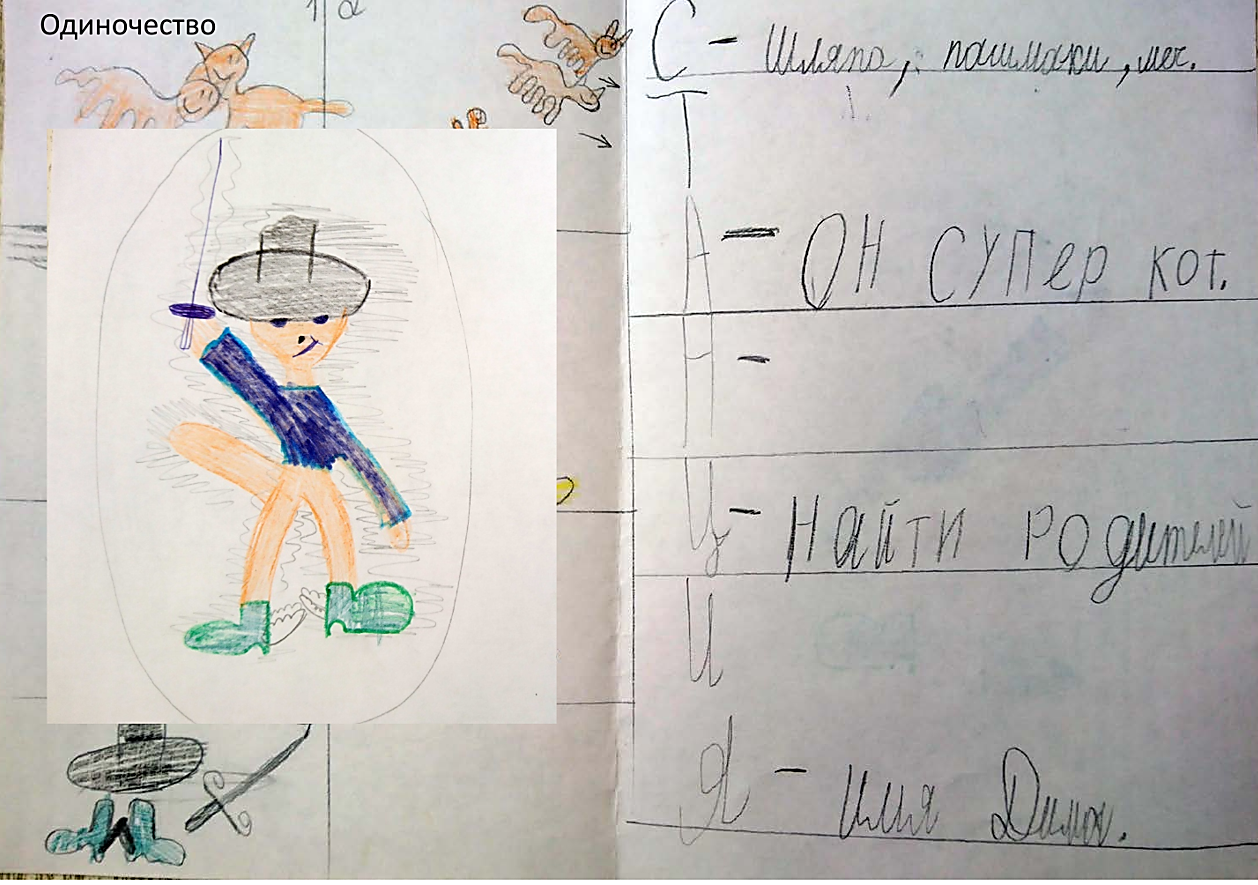 При создании анкеты персонажа мультфильма в графе «Цель героя» ребёнок пишет: «Найти родителей».