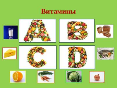 Витамины: укрепляет кости, мышцы нашего организма. Повышают работоспособность, сопротивляемость к инфекционным заболеваниям. Если в пище их недостаточно, то человек очень быстро может заболеть. Больше всего витаминов в овощах и фруктах.