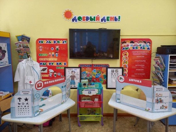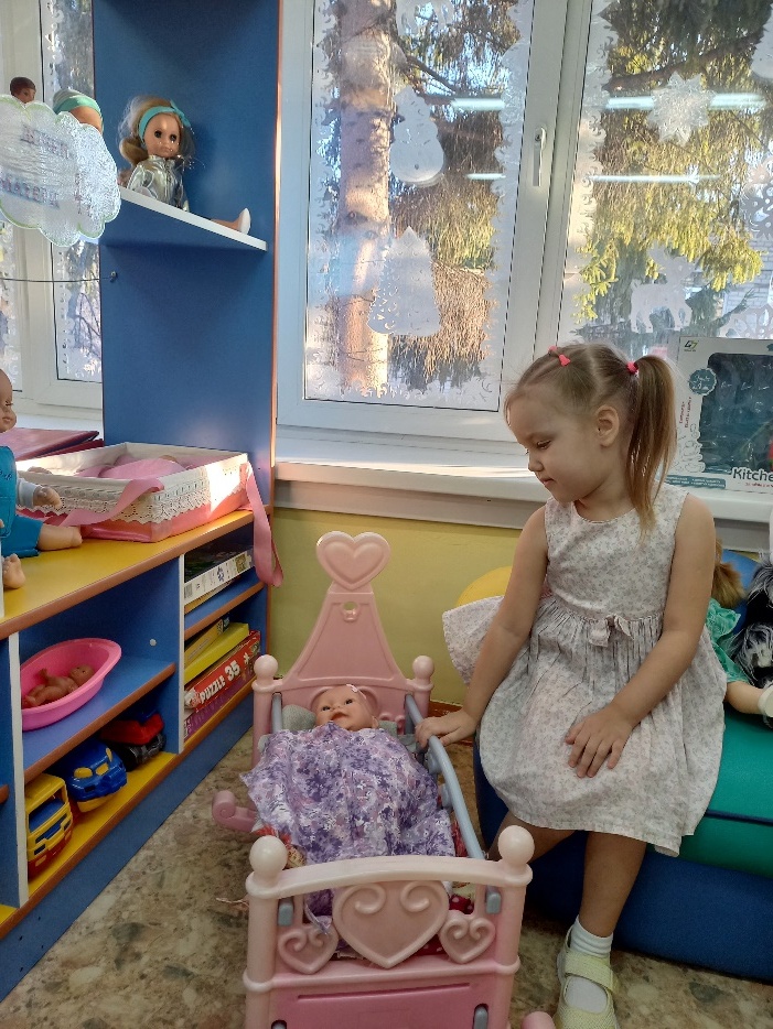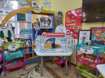 У нас в группе действует много разных уголков сюжетно-ролевой игры («Дочки-матери», «Больница», «Аптека», «Стройка», «Швейных цех», «Кафе», «Салон красоты» и так далее), где дети могут как самостоятельно играть и применять свои знания, так и играть со взрослыми, которые помогут, подскажут и направят игру в правильное русло. Дети играют как большими группами, так и по несколько человек, делятся по желаниям и интересам.