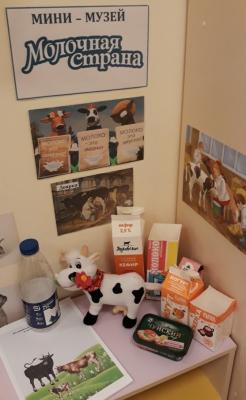 Изучая с детьми лексическую тему «Продукты», собрали в группе мини- музей «Молочная страна». Сначала малыши рассматривали «экспонаты», предложенные нами и принесённые из дома для музея, изучали, затем по инициативе ребят в группе развернулась сюжетно-ролевая игра «Молочный отдел магазина». И все продукты были «проданы».