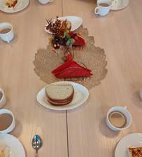 Стараемся по сезону красиво оформлять столы для ребят, демонстрируя красоту этикета, а родителей призываем обедать вместе с детьми, чтобы вырабатывать в детях хорошие привычки, показывать на собственном примере разумность и необходимость культуры еды.