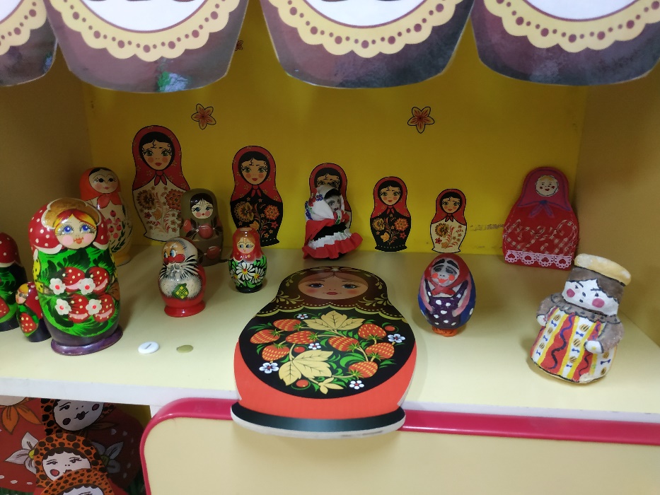В младшем дошкольном возрасте начинаем знакомить детей с дымковской игрушкой. Для этого создаём в группе уголок творчества в русском народном стиле, пополняем книжный уголок. В уголок изо-деятельности вносим иллюстрации с изображением дымковской игрушки, элементов росписи, предметы народного творчества, матрешки, народные деревянные игрушки – ваньки-встаньки и др.