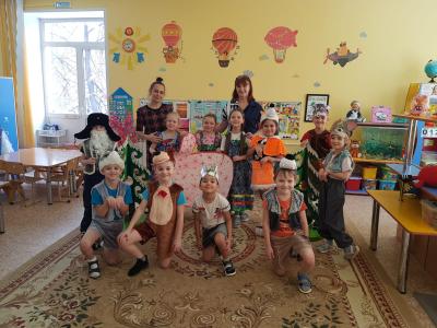 В средней группе воспитатели продолжают знакомить детей с произведениями устного народного творчества и прежде всего со сказками. А также воспитатель учит детей рассматривать и описывать ярких матрёшек, разноцветные башенки, грибочки, забавные богородские игрушки.