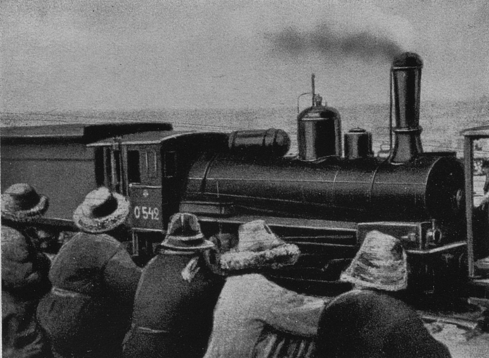Статья, посвященная Транссибирской магистрали, занимает почти 20 страниц и иллюстрирована 21 фотографией высочайшего качества. На них мы можем увидеть быт и детали, о которых русские люди того времени редко упоминали, поскольку не видели в них ничего особенного. Ну кому интересно, что на станциях у часов три стрелки, у советского железнодорожника на пряжке изображен двуглавый орёл, а пассажиры поезда наперегонки за кипятком на каждой без исключения станции железной дороги.