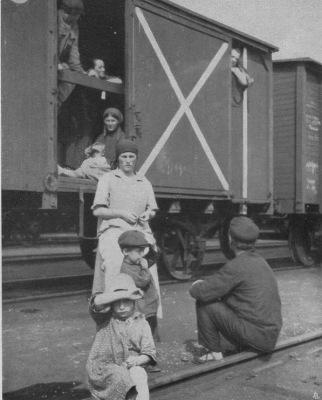 Правительство организовало большие лагеря (так называемые Pereselenskie Punkti[14]) в важных городах на границе между европейской Россией и Сибирью; и из этих концентрационных пунктов колонизаторы в достаточном количестве, чтобы заполнить один или более товарных поездов (40 человек, 6 лошадей) перемещались вместе с их бедными пожитками. На каждой из двух стен товарного вагона были организованы две деревянные лавки одна выше другой; в холодный сезон, по середине вагона устанавливалась печь, дрова для которой брались из заготовленных поленниц на станциях, которая могла предоставить и кипяток для чая.