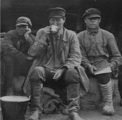 Паренёк справа заменил кожаные сапоги обувью из серой ткани. В правильном mugik проявляются следующие черты: настойчивость, терпение, скромность и тоска.
