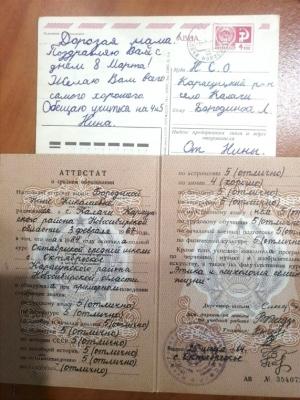 Чемоданчик с открытками и личными письмами хранит мысли и чувства отправителей. Каждая открытка и письмо – это мгновение, запечатленное на бумаге, которое переносит нас в другой мир. Они рассказывают о событиях, которые были близки прошлым поколениям и позволяют узнать, как жили и чувствовали наши предки. Я держу в руках открытку, которую моя мама – школьница, учившаяся в соседнем селе, отправила своей бабушке на 8 марта – обещала хорошо учиться. Обещание она, конечно же, выполнила.