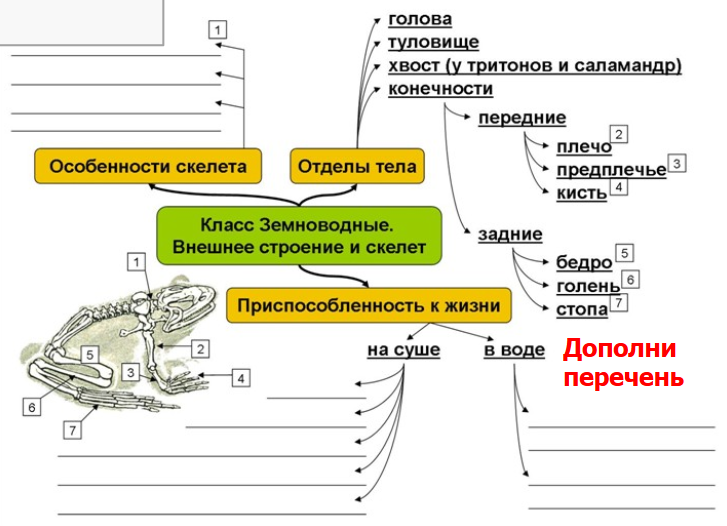 3. Дополни схему (сверни информацию) по теме «Земноводные», опираясь на материал учебника и дополнительных источников (рис. 4).