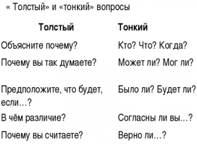 Рисунок 3. Прием смыслового чтения «Тонкие и толстые вопросы»