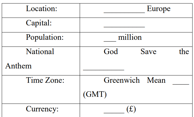 Цель задания: кратко представлять страну изучаемого языка и ее наиболее известные достопримечательности.