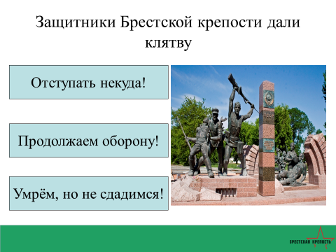 Слово учителя. «На крайнем западе нашей страны стоит Брестская крепость. Совсем недалеко от Москвы: меньше суток идёт поезд. И не только туристы – все, кто едет за рубеж или возвращается на родину, обязательно приходят в крепость.