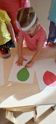 Игра «Нарисуй нужного цвета веревочку для шарика».