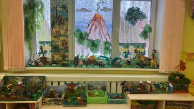 Родителям стала тоже интересна тема проекта, стало интересно исследовать историю древних существ, и они с удовольствием стали принимать участие в проекте. И мы решили организовать выставку мини-музея «Динопарк» от самых древних до современных животных, а также организовали конкурс макетов «Такой таинственный мир».