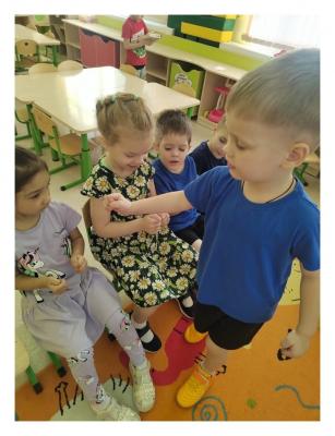Ещё один интересный момент: дети, которые вначале стеснялись говорить на публику, запомнив считалки, не хотят остаться в стороне, а тоже стремятся посчитать при помощи считалки.