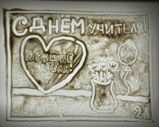 Рисуя песком, ученики погружаются в особую атмосферу творчества. Процесс рисования увлекает, затрагивает все сферы чувств, вдохновляет рисующего человека. С помощью песка можно создать образ любимой буквы, написать слова, нарисовать пейзажи, портреты, натюрморты, абстракции.