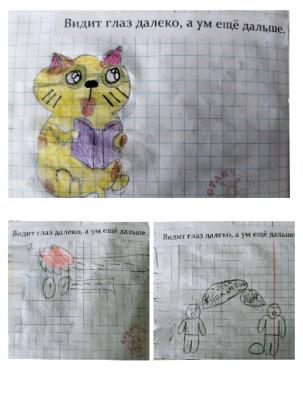 Рисунки 2-4. Иллюстрации пословицы «Видит глаз далеко, а ум ещё дальше»