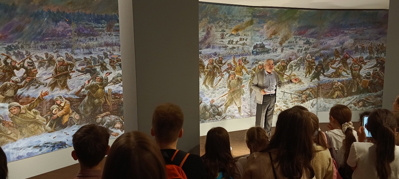 Перед началом темы Великой Отечественной войны обучающимся демонстрируется презентация с подборкой картин русских художников, изображающих события тех лет. Многие художники сами сражались в рядах защитников Родины и от первого лица повествуют о тех страшных событиях, о героическом подвиге русских людей, о горе тысяч матерей, потерявших сыновей, и о радостной и горькой Победе. Вдохновившись их примером, ребята рисуют русские города, поля, мирное небо, за которые сражались солдаты, танкисты, летчики, известные и неизвестные герои Великой Отечественной войны. Особенный творческий процесс разгорается, если дети могут изобразить своего прадедушку – героического участника тех страшных военных событий.