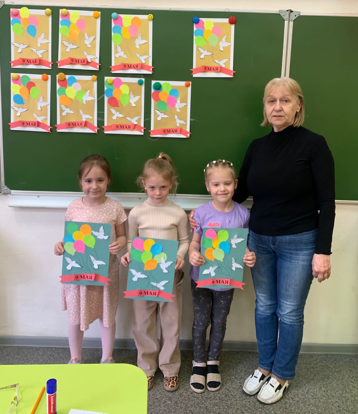 Провожу беседы о празднике Победы, о родственниках, погибших в годы войны: рассматривание фото из семейных альбомов, фото из журналов. Организуем выставки рисунков «Праздничный салют». Рассматриваем и обсуждаем картины о войне.