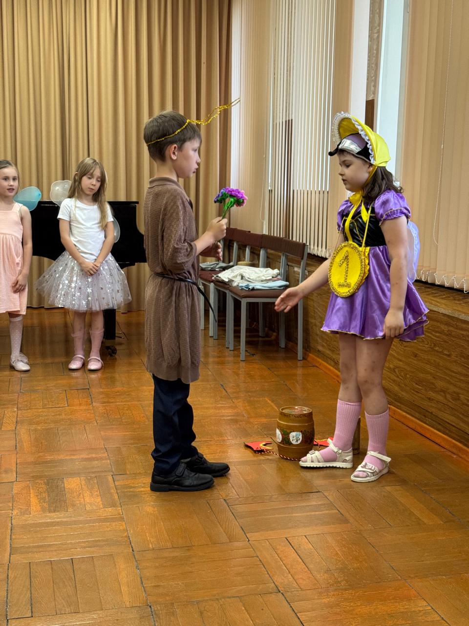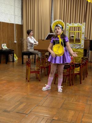 Я люблю театр и стараюсь привить эту любовь своим ученикам. Мы часто делаем музыкальные постановки. Одна из наших любимых – детская опера советского композитора М. Красева по сказке К. Чуковского «Муха-Цокотуха». Дети любят сказки Чуковского, сама я в детстве знала наизусть «Тараканище», «Краденое солнце», «Путаницу», «Федорино горе», «Доктора Айболита» и, конечно, «Муху-Цокотуху». Тексты Чуковского легко запоминаются, им присуща особая ритмичность, музыкальность. Строки будто бы поются, как песня: «Муха-муха Цокотуха, позолоченное брюхо…». Персонажи – очень живые, яркие: храбрец-комарик с саблей, Доктор Айболит, который мчится спасать зверей, незадачливая неряха Федора, от которой сбежала даже посуда. Мир сказок Чуковского фантастичен, но логичен и вполне ясен для ребенка: ему понятно, что писатель подразумевает в своих историях. А юмор его неподражаем. И взрослые, и дети смеются над глупостью злодеев, трусостью огромных зверей перед маленьким тараканом, абсурдной логикой в сказке «Путаница».