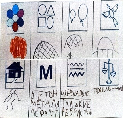 В группе вся информация по проекту фиксировалась, кодировалась и систематизировалась детьми. В этом процессе они использовали инструменты ТРИЗ-технологии. Например, для составления описательных рассказов о различных достопримечательностях Новосибирска или объектах, связанных с ними, дети использовали морфодорожки с именами признаков объектов (рисунок 1).