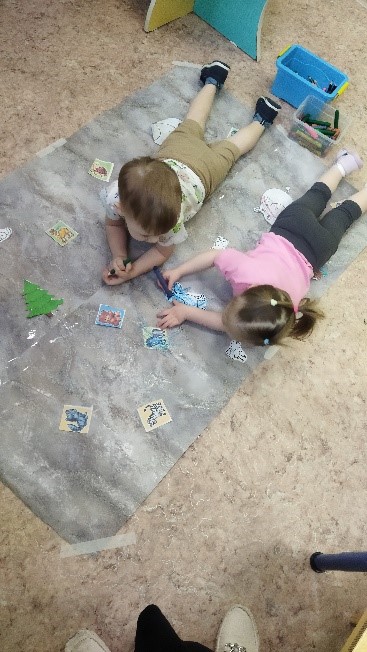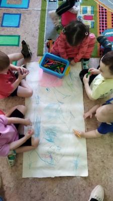 2. Рисование на полу в большом формате – это отличный способ развить как мелкую, так и крупную моторику, предоставив неограниченное пространство для творчества. Для этого можно использовать плотные обои или крупные листы бумаги, закрепленные скотчем на полу или столах, позволяя малышам свободно перемещаться и воплощать свои идеи. Почему стоит попробовать? Это способствует развитию моторики, дает ребенку полную свободу для самовыражения и создает прекрасную возможность для совместного творчества, где дети могут обмениваться идеями и учиться взаимодействовать друг с другом.