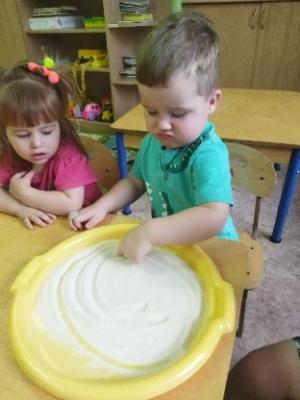 4. Манкография – это уникальный художественный прием, заключающийся в создании изображений путем рассыпания манной крупы (аналог пескографии). Детям невероятно интересно наблюдать, как обычные крупинки превращаются в настоящие шедевры, наполненные волшебством и магией. Эта техника направлена на развитие мелкой моторики рук, воображения, фантазии и координации движений.