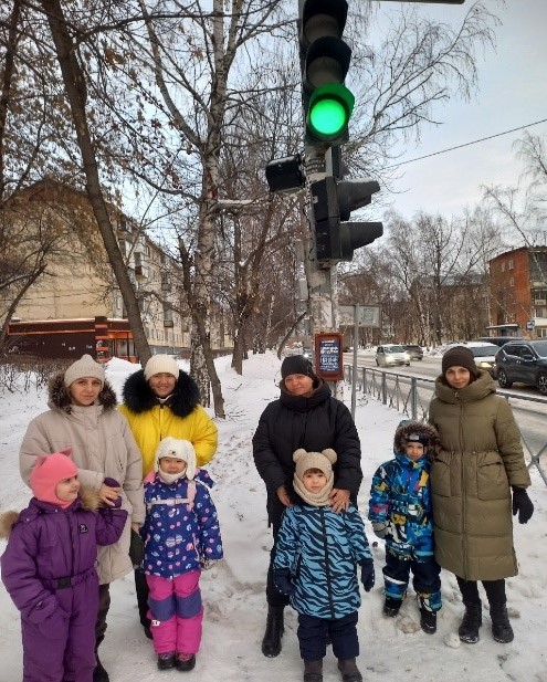 Провели экскурсию выходного дня «Красный, жёлтый, зелёный», во время которой на практике закрепили вместе с родителями и детьми, где и как правильно переходить дорогу.