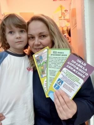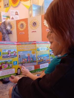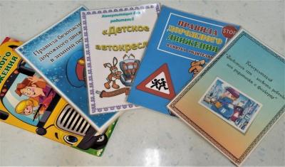 В приёмной детского сада выставлены разнообразные информационные материалы, консультации для родителей и детей по ПДД («Детское автокресло», «Засветись сам – засвети ребёнка, или родителям о фликерах», «Правила безопасного дорожного движения в зимний период», «Памятка родителям по ПДД»), которые привлекают внимание родителей и детей к совместному рассматриванию, периодическому изучению и повторению ПДД. Раздаём разные брошюры: «Родителям – водителям», «Знай правила дорожного движения», «ПДД».