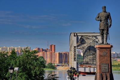 Памятник императору и мосту на набережной, фото: Андрей Чердаков